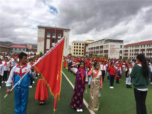 入队仪式后,玛沁县第一民族小学少先队鼓号队进行了鼓号队风采展示,大武地区各学校少先队组织广大少年儿童精心排练的文艺节目高潮迭起,精彩纷呈。鼓乐、歌唱、舞蹈、武术、国学吟诵等丰富多彩的表演形式,生动展示了当代果洛少年儿童朝气蓬勃、积极进取、阳光健康的良好精神风貌,充分表达了他们爱党、爱祖国、爱领袖、爱家乡的朴素感情。