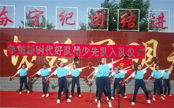 孙庄学校又迎来147名表现优秀的小朋友光荣地加入中国少年先锋队,戴上鲜艳的红领巾,成为新时代少先队组织的一员,团委书记宣读新队员入队决定和新队员名单。