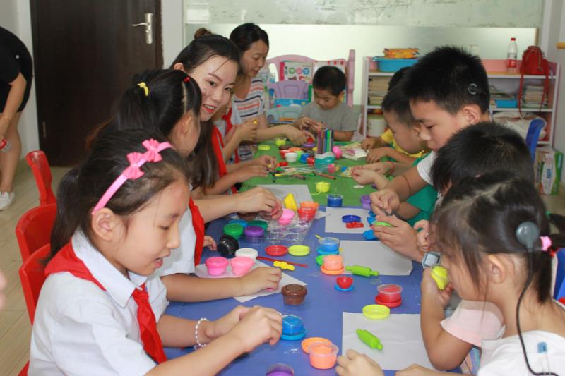 少先队员们带着图书、文具、牛奶等物品,来到合肥市高新区持爱言语康复中心,陪言语障碍的残疾儿童交朋友、做游戏,一起画画、做泥塑,共同度过了一段愉快的时光。