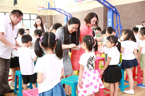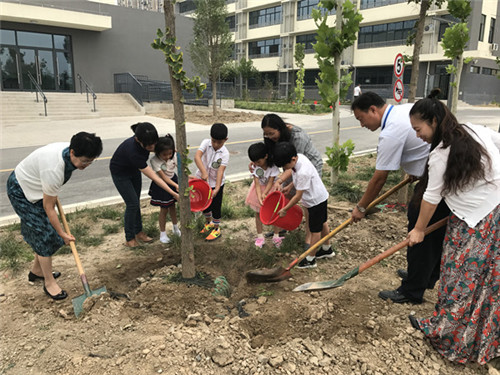 伴随着《义勇军进行曲》的嘹亮国歌,五星红旗冉冉升起,拉开了东洲校区开学典礼的序幕。可爱的芳草东洲娃在爸爸妈妈的牵手下,走上红地毯,跨越芳草幸福之门,迈入东洲快乐殿堂则为开学典礼书写了小学生涯开学第一课的最美诗篇。在开学典礼上,芳草地国际学校党总支穆英书记用亲切的话语向全体芳草东洲师生与家长介绍了芳草光荣的往昔,并展望了芳草辉煌的未来,穆书记希望全体芳草东洲学子铭记校训、做一个爱国爱校、文明有礼,成为具有“中国情怀、国际视野”优秀学子。接下来校区主管刘军校长的讲话则是对所有支持与关心东洲校区建设的家长、社会各界人士表示衷心的感谢。开学典礼是芳草东洲娃的展示舞台,面对家长诵读着由芳草地国际学校刘飞校长和家长共同题写的祝福寄语,全体芳草东洲娃感到无比的幸福,他们用拥抱爸爸妈妈来表示激动的心情,用高声齐呼:愿做一株芳草,永远向着希望生长来表达芳草学子的快乐。 “我和小苗共成长”的植树活动,则把开学典礼推向了高潮。参加开学典礼的嘉宾和集团领导、芳草东洲校区的干部教师、可爱的芳草东洲娃娃以及他们的家长,共同在芳草地东洲校园里种下了一颗颗芳草幼苗,用这种我和小树共成长的方式来诠释芳草地国际学校东洲校区的美好未来。