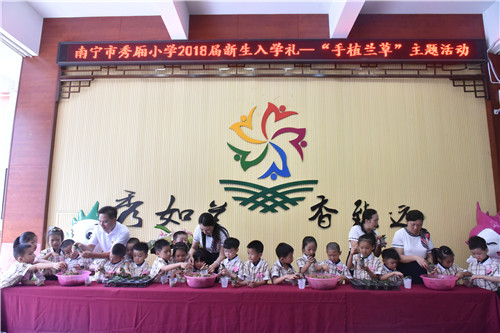 秀厢小学在“学在西乡塘”教育品牌的引领下,着力打造“兰韵文化”特色文化,努力办好人民满意的教育。“今天种下希望,明天收获成功”!学校领导、一年级新生家长和孩子们共同种下了属于孩子们的意义深远的兰花草,寓意着从今天开始他们就是骄傲的秀厢学子了,莘莘学子们就像小小的兰草一样,生根、发芽、茁壮成长,并将秉承兰花高洁、淡泊、傲骨的精神品格,秉持“崇德、尚实、雅行”的校训,发扬“恭谦有韧 自强不息”精神,好好学习,好好锻炼,用实际行动努力践行社会主义核心价值观!