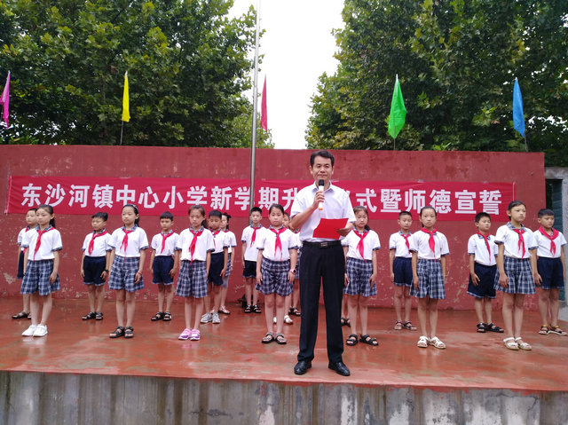 9月3日早上,阳光明媚,山东省滕州市东沙河镇中心小学举行了隆重的“升旗仪式暨师德宣誓仪式”。