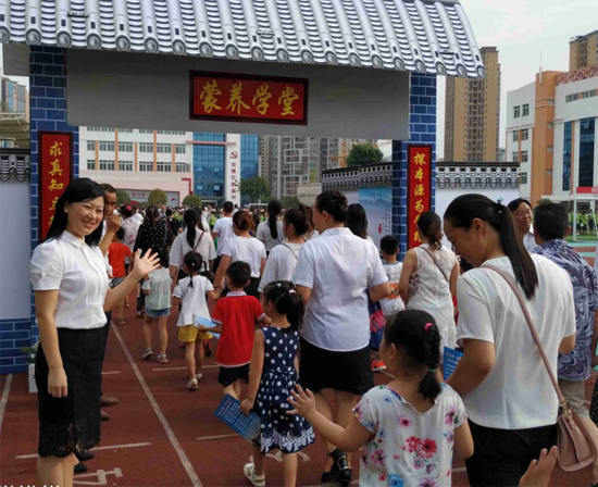 9月5日上午,达州市达川区实验小学举行2018年秋季开学典礼。当天,学校老师早早地等候在门口,亲切地迎接每一个“蒙养娃”的到来。一年级的孩子在家长的带领下绽放花朵般的笑容,大步跨入“蒙养学堂”大门。随后,举行了别开生面的开学典礼:校长侯俊杰代表全校教师三击鼓,表达全校教师的美好愿望。一击鼓:蒙养学子入学堂;二击鼓:开笔启智立志向;三击鼓:碧海蓝天任翱翔。