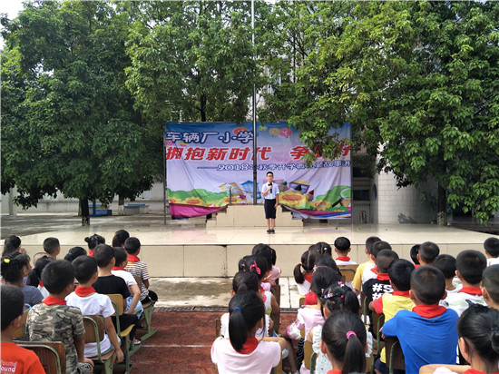 9月3日上午,眉山车辆厂小学全体师生齐聚操场,举行“拥抱新时代,争做好队员”2018年秋季开学典礼暨故事讲说比赛。