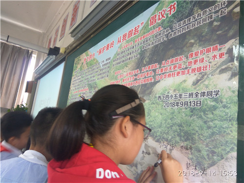 各班老师领孩子们进行宣誓,全校师生签名承诺,使同学们充分认识到秦岭的重要性,牢固树立社会主义生态文明观,确保持之以恒地有效地把秦岭保护好。
