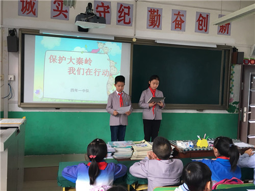 班队会课上,各班老师们通过播放大秦岭的视频资料,向同学们展示秦岭的美丽,再结合秦岭生态保护的具体案例,让同学们明白秦岭的重要作用。