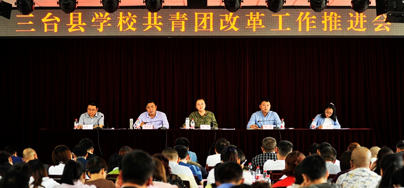 为深入学习宣传贯彻党的十九大精神,安排部署学校共青团、少先队改革重点工作,9月17日,三台县学校共青团、少先队改革工作推进会在青少年活动中心召开,县委常委、县总工会主席胡璐出席会议并讲话,县教体局党委委员、副局长胡永生主持会议。县教体局、团县委相关领导,各学区德育专干,各中小学团组织负责人、少先队大队辅导员共计230余人参加了会议。