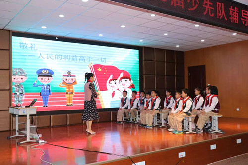 下午,9名辅导员们以“队礼”为主题,分别给15名二年级少先队员上微队课。一个个构思巧妙的设计、一层层精心设计的内容、一种种喜闻乐见的形式,让“队礼”的含义、动作、使用场合等深入童心。