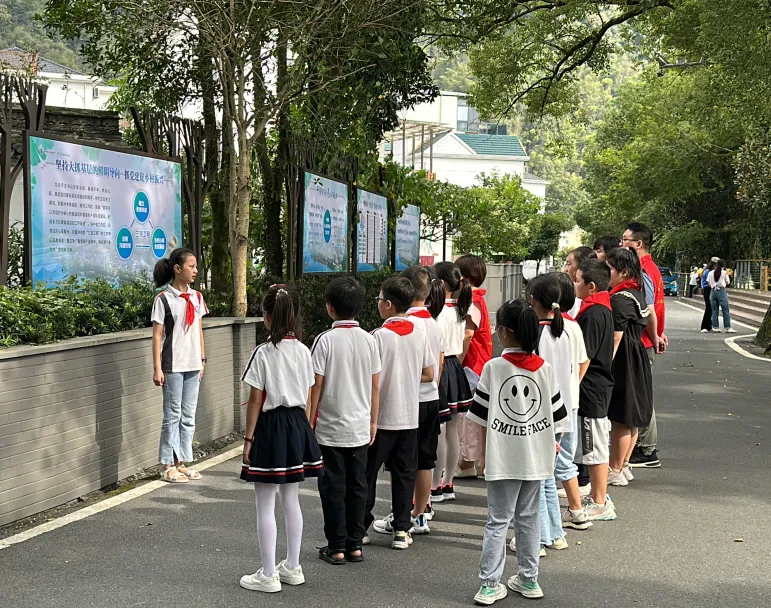 在红领巾讲解员的带领下,少先队员们走进金星村,沿着习爷爷的足迹,见证殷殷嘱托下的时代变迁。队员们在千年古树下静静聆听“一份嘱托 十年追梦”的光辉故事,实地感悟金星村的华丽巨变离不开党的正确领导,人民的美好生活离不开和平和优越的社会主义制度。