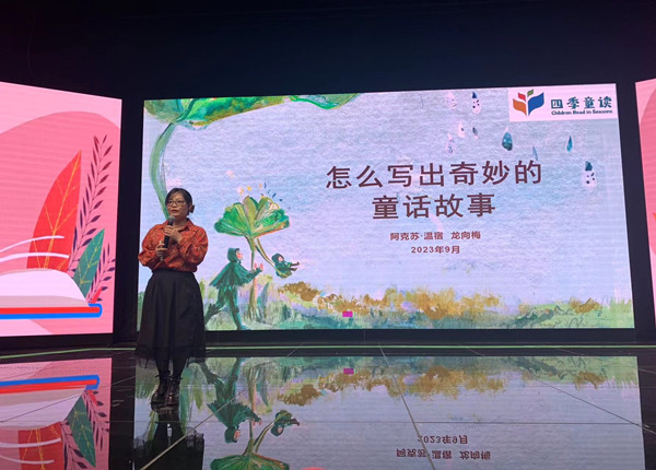 9月7日至9月10日,龙向梅老师分别来到新疆维吾尔自治区图书馆、乌鲁木齐市新疆教育学院实验小学、阿克苏地区图书馆和温宿县图书馆,为孩子们带来了《怎么写出奇妙的童话故事》主题讲座,结合《从前有一个故事》的5个童话故事,从“什么是故事”“故事如何生长”“故事的灵感从哪里来”“如何展开想象”以及“写作最好的方法就是写”五方面讲解了怎样开始创作一个故事,在气氛热烈的互动中激发了孩子们的创意,给小朋友们上了一堂别开生面的“写作课”,在他们心中埋下了一颗文学创作的种子。