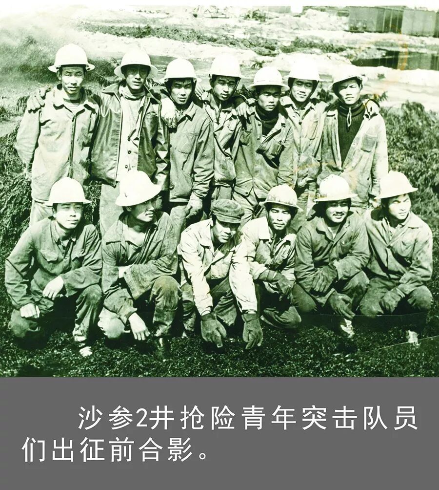 两张照片,将40年前的沙参二井抢险保井青年突击队和新时代的中国石化顺北油田青年突击队,以跨越时空的方式紧紧连接在一起。