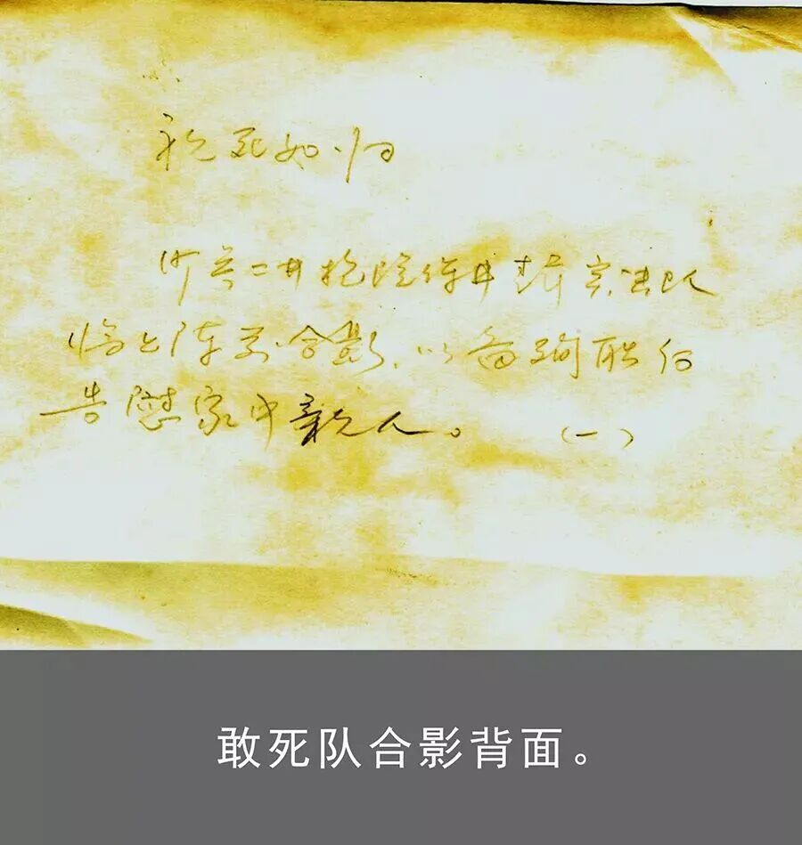 在这张发黄的突击队员合影照片背面,他们写下这样一段话作为临别留言:“视死如归——沙参二井抢险保井青年突击队临上阵前合影,以备殉职后告慰家中亲人。”