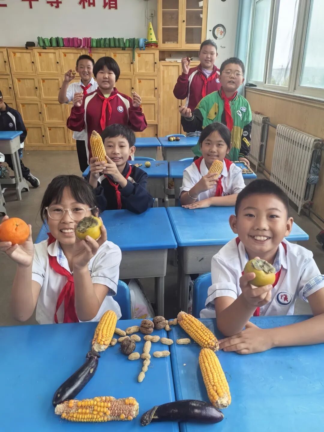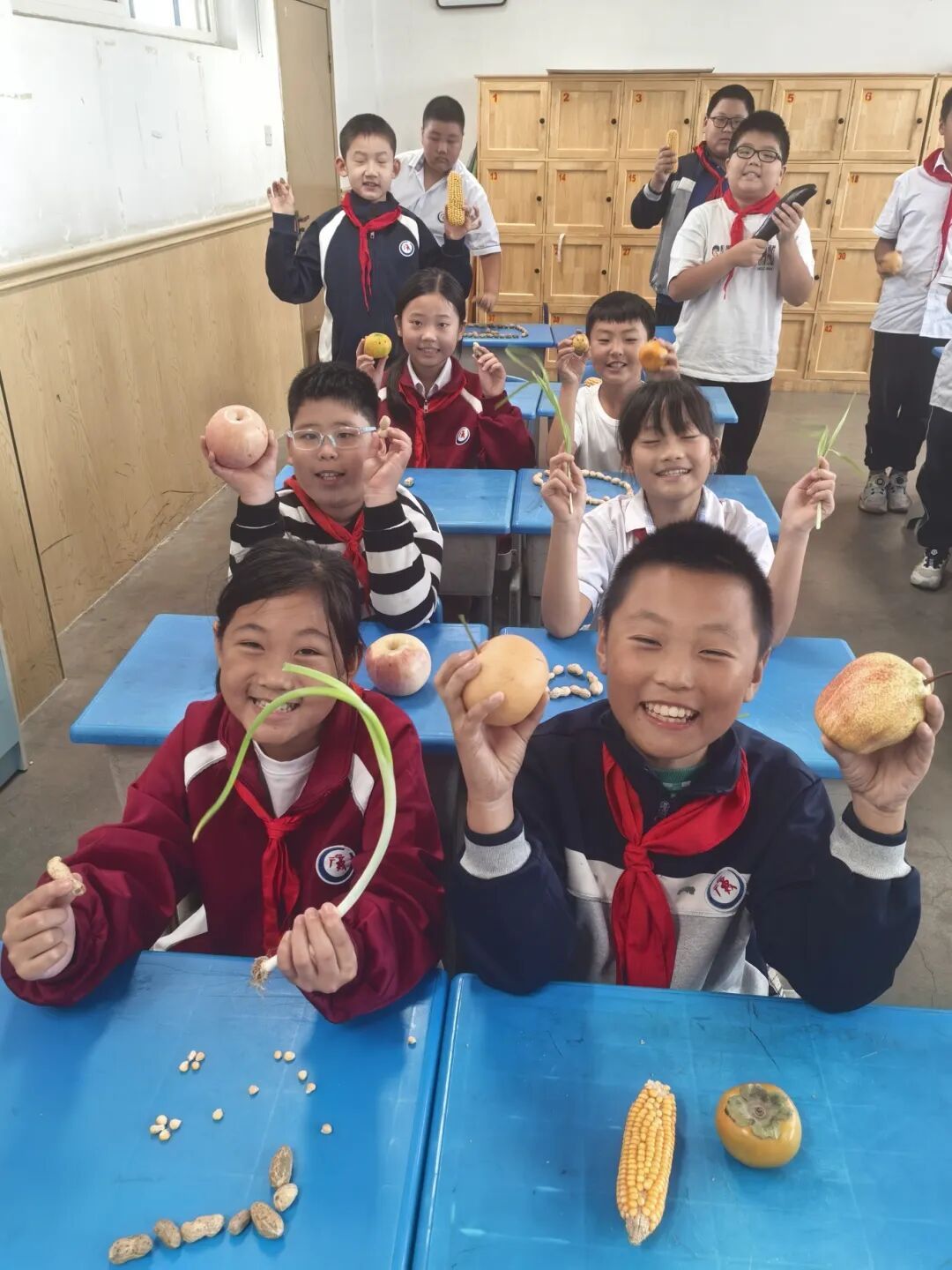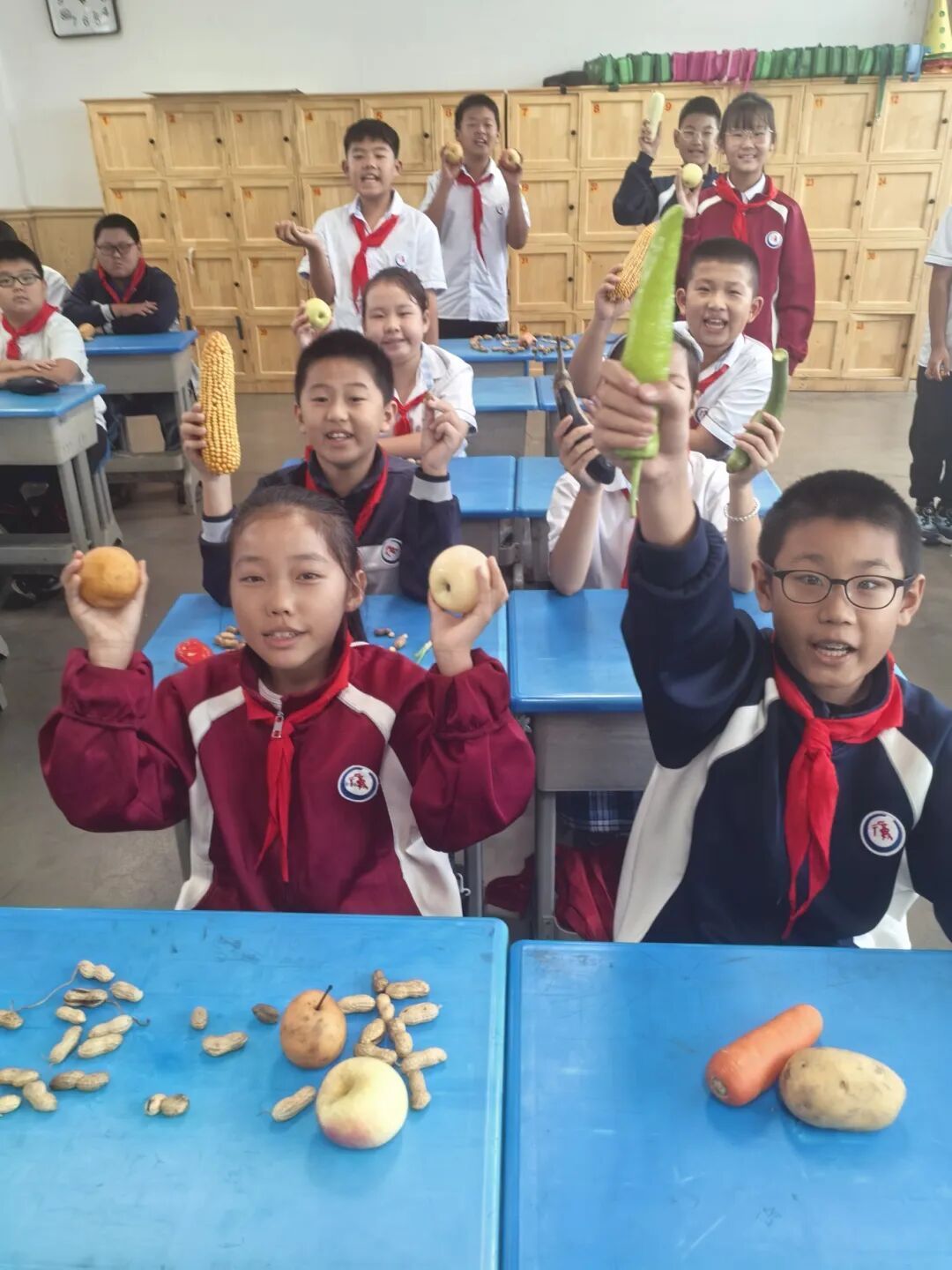 队员们带来了自己喜欢的水果、蔬菜和农作物,集结在一起,过了一个有滋有味的“丰收节”。