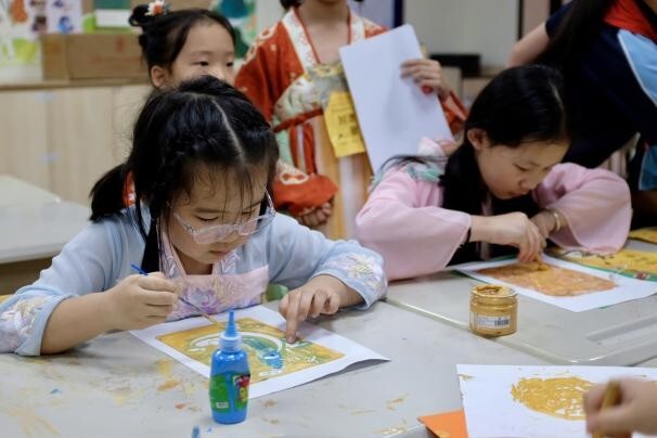 漫步游园会,仿佛打开了一扇穿越时空的文化之窗。“拓印中秋”让传统纹样跃然纸上,“水中捞月”巧化古诗意象为童趣游戏;“古箭寻踪”重现射礼风雅,“飞花令”掀起诗词热潮。孩子们在欢声笑语中亲触文化脉络,非遗的种子悄然播撒心田,彰显“以文化人、以美育人”的生动实践。