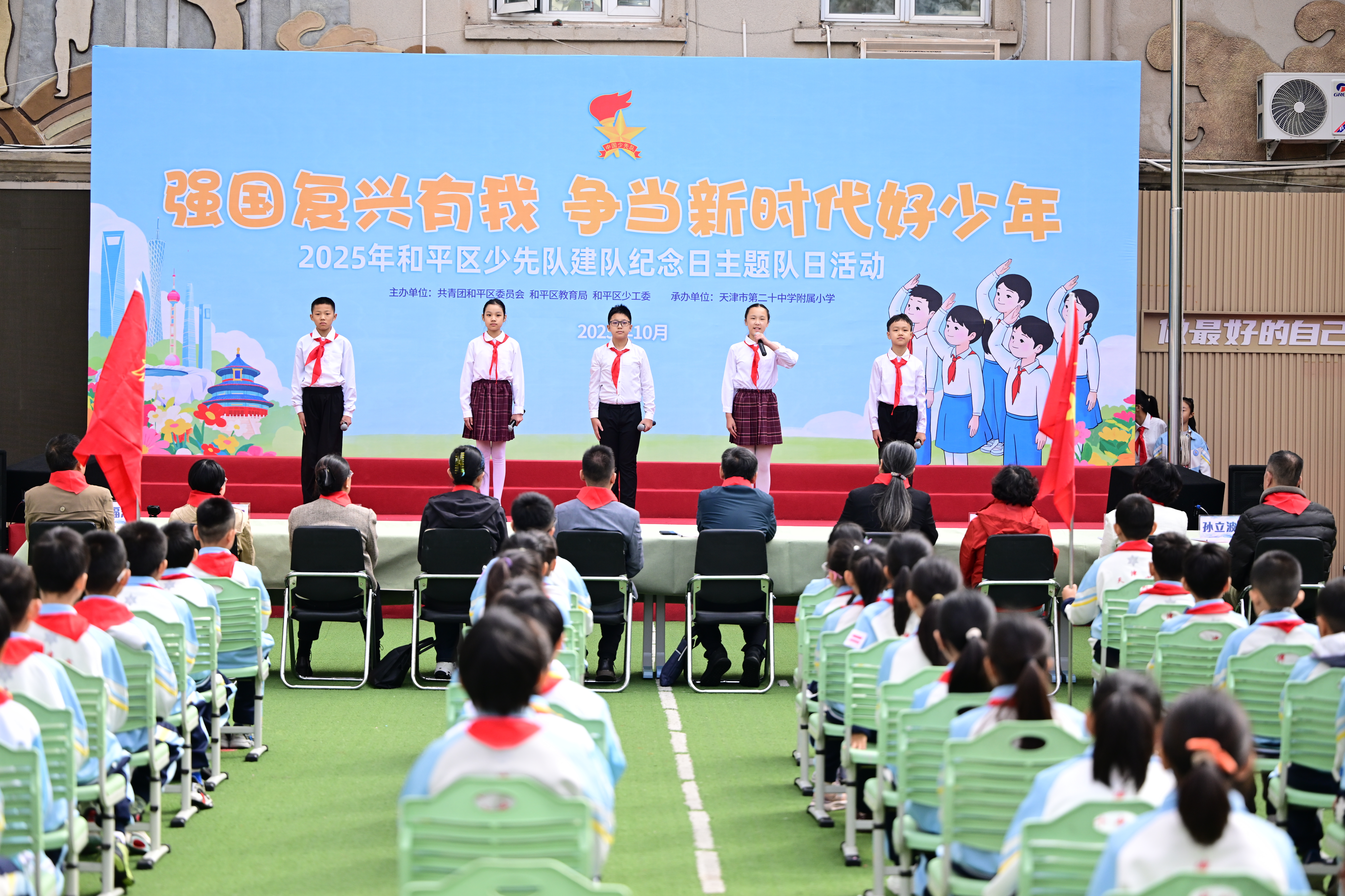 金秋时节,队旗高扬。为纪念中国少先队建队76周年,天津市和平区“强国复兴有我 争当新时代好少年”主题队日活动在天津市第二十中学附属小学隆重举行。和平区教育局党委委员、副局长冯耀忠,共青团和平区委员会副书记苏堤、和平区教育局群团工作科四级调研员、科长叶宁、共青团和平区委员会团少部部长刘睿卓、和平区教育局群团工作科侯媛媛等领导嘉宾莅临现场,与全区少先队员共庆属于少年的节日,在运河文化的深厚底蕴与少先队的红色信仰交融中,为新时代少年的成长注入温暖力量。