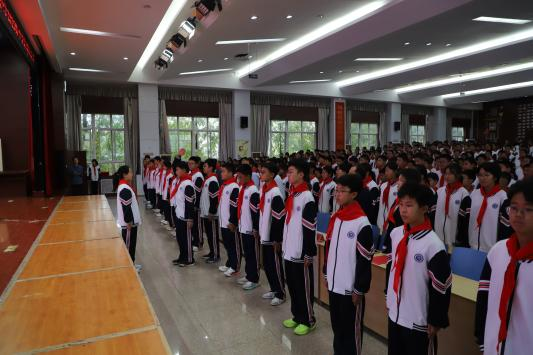 “我们是共产主义接班人,继承革命先辈的光荣传统……”嘹亮的歌声在报告厅里激荡回响。少先队员们昂首挺胸,眼神坚定,将对祖国的赤诚热爱与对少先队组织的忠贞信念都融入激奋人心的旋律中。
