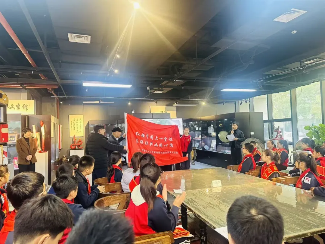 王晓云副校长代表学校,向积极参与的同学、热心服务的家长志愿者以及基地负责人致以诚挚谢意,并向小讲解员们阐述了本次活动的重要意义,激励大家明晰责任、勇担使命。随后,李祥馆长将象征传承与传播的活动旗帜郑重交予我校讲解员代表。鲜艳的旗帜,点燃了每一位同学心中传承文化的热忱之火。