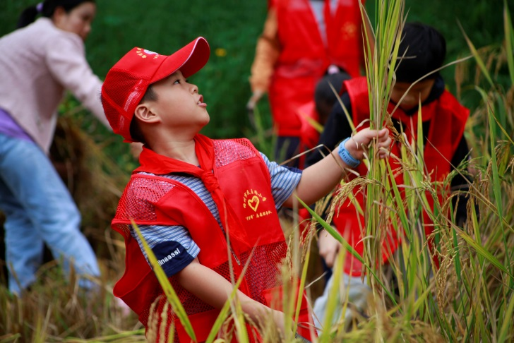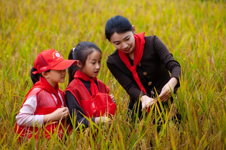 秋风拂过田野,金黄的稻穗垂下沉甸甸的脑袋,像是在迎接这群带着劳动热情的少年儿童。在辅导员的耐心指导下,队员们迫不及待地接过工具,踩着田埂走进稻田开始劳作。“原来碗里的每一粒米,都要经过这样辛苦的劳作!”队员小玮擦去额角的汗珠,眼神却愈发坚定,手上的动作也在慢慢熟练。阳光下,泛红的脸颊与金黄的稻浪相映,成为田野间最动人的风景。