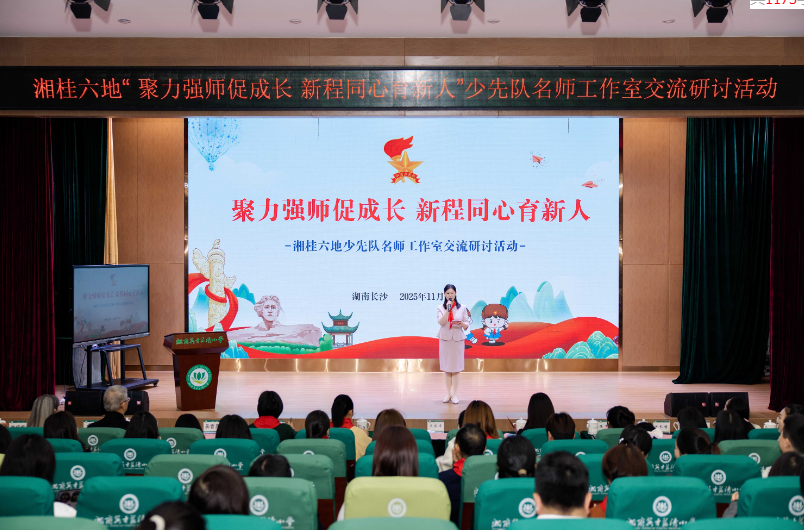 为深入学习贯彻党的二十届四中全会精神,全面落实第九次全国少代会工作部署,深化落实《中共中央关于全面加强新时代少先队工作的意见》,推进“播种”工程、“壮苗”工程、“强师”工程的实施,促进新时代少先队事业学科化、专业化发展,11月13日至14日,由湖南省少工委办公室、广西壮族自治区少工委办公室指导,长沙市少工委办公室与中国少年儿童新闻出版总社湖南阅读推广办事处联合主办,湖南大学子弟小学少先队名师工作室、长沙市吴海芸少先队名师工作室、常德市少先队工作学会共同承办的湘桂六地少先队名师工作室交流研讨活动在长沙市成功举办。
