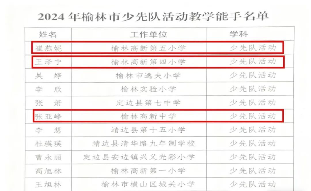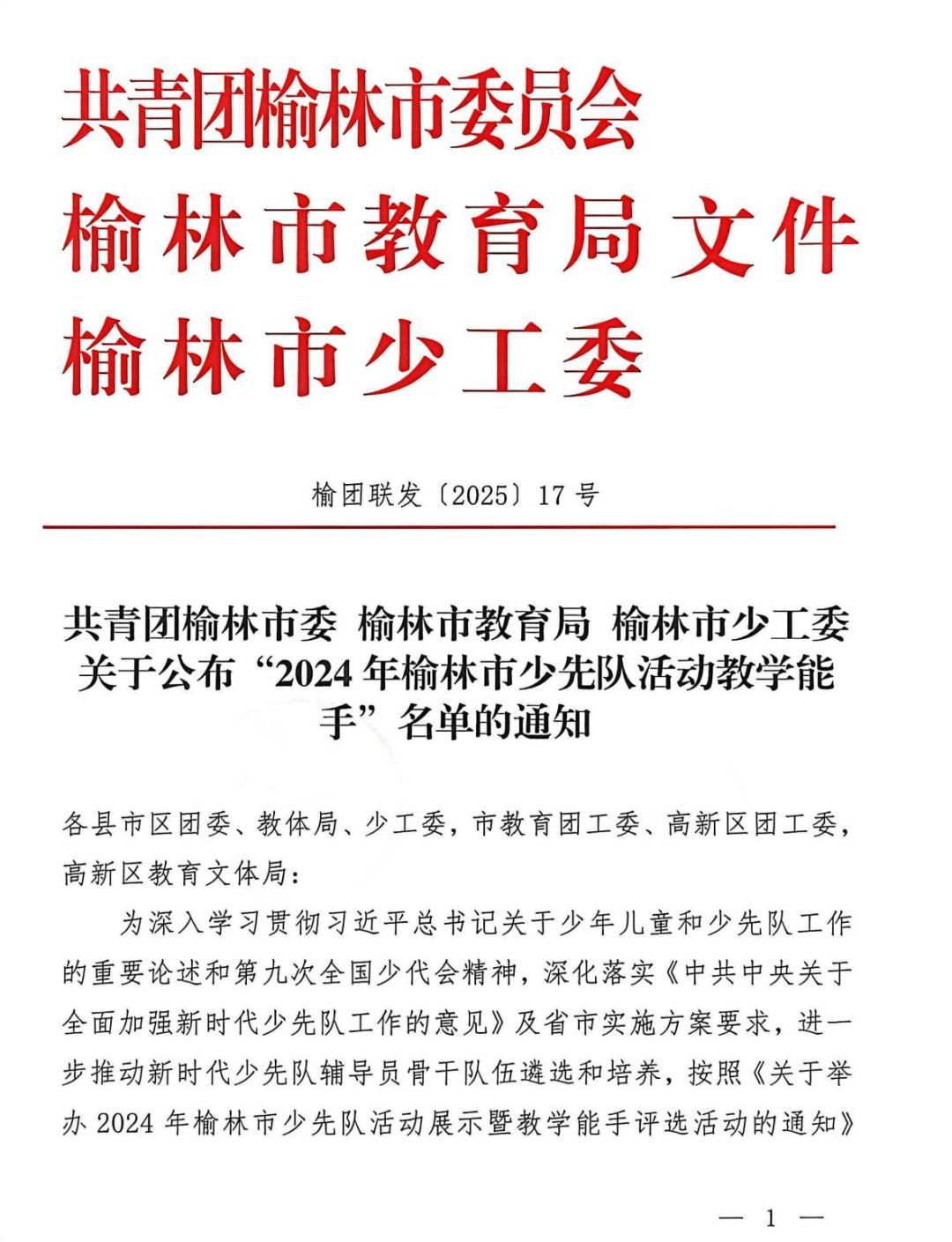 继工作室成员在省、市、区三级赛事中斩获多项殊荣后,捷报再传!三位辅导员荣获 “榆林市少先队活动教学能手”称号 !
