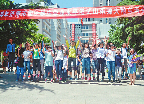 考生们欢呼雀跃庆祝完成中考 记者谢永亮 摄
