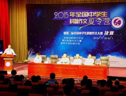 7月30日,2015年全国中学生科普作文夏令营暨第二届全国中学生科普作文大赛决赛在北京王府学校举行。来自北京、山东、河南、黑龙江和吉林等地近200名学生齐聚一堂、同台竞技。