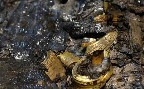 原文配图:这是在海昏侯墓主棺发现的马蹄金器(12月20日摄)。