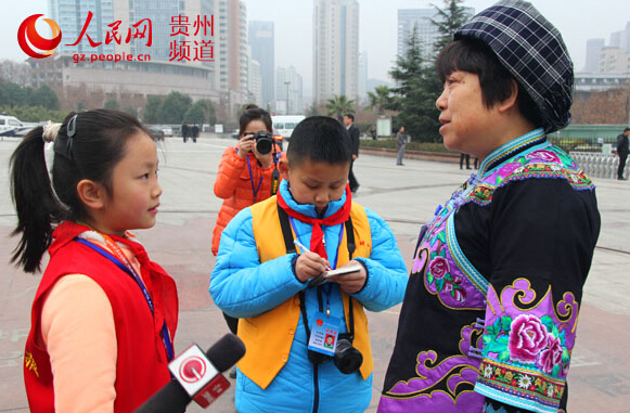 人民网贵阳1月26日电(王钦)“阿姨,我能问您一个问题吗?”“好的。”“有人说空气污染是现在最大的民生问题,请问您怎么看?”1月26日上午,在贵州省两会主会场入口处,两名佩戴红领巾,胸前挂着记者证,手持照相机和采访本的小记者出现在代表委员们面前,就“校车安全”“食品安全”“生态环境”等热点话题进行了相关提问。