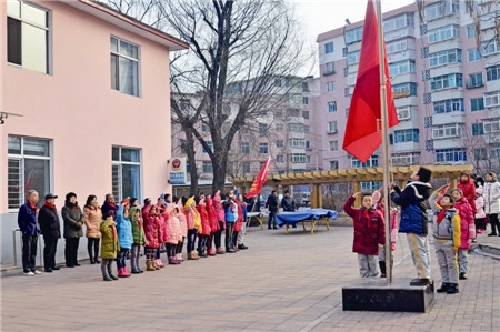 溪湖区彩屯街道办事处彩胜社区“黄继光英雄中队”成立,正在假期的20多名少先队员参加了授旗仪式。随后,小朋友们和部分家长在活动室一起观看了革命史教育影片,激励他们追寻英雄足迹,争做英雄传人。