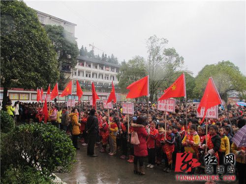 春寒料峭,天空飘着蒙蒙细雨,但通道县二完小校园内师生热情洋溢,激情高昂,该校20个少先中队共1300多人,开展了一场以“志愿服务进社区,弘扬雷锋精神,争做文明学生”为主题的社会实践活动。