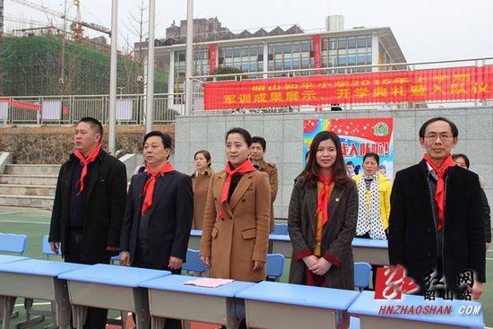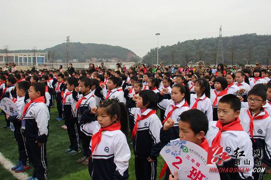 雨后初晴,整洁的校园,绿茵场上,红领巾映红了花儿般的笑脸。3月13日,昭山和平小学举行2015年上学期军...