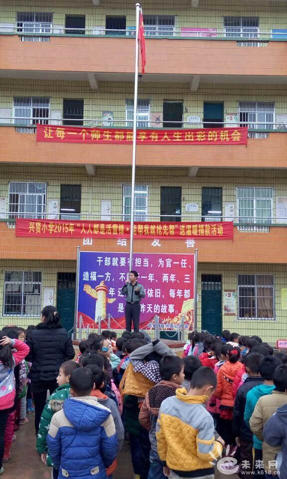 为了响应上级的号召,传播伟大的雷锋精神, 2015年3月9日早晨,兴贤小学开展“人人都是活雷锋,能帮我就抢先帮”为贫困学子送温暖捐款活动。伴着微凉春风,踏着细细春雨,活动顺利开展并取得圆满成功。