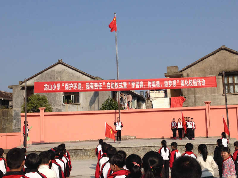 为进一步推进校风建设,优化学校育人环境,培养学生文明的行为规范,13日下午,龙山小学举行“保护环境,我有责任”启动仪式,暨“学雷锋,传美德,颂梦想”美化校园活动。