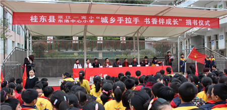 未来网北京3月20日电(通讯员邓稳祥 黄云凤)3月17日上午,桂东县沤江一完小举行"城乡手拉手"捐书活动和东洛举行"书乡伴成长"读书活动,参加的领导有沤江镇党委副书记朱永平、县团委副书记彭彦臣、东洛乡副乡长刘大通、教育局基教股副股长周晓旭、东洛乡团委书记郭玉环。