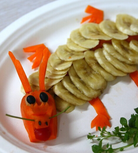 该社区工作人员精心准备的新鲜蔬果成了孩子们创作的原料,圣女果、香蕉、黄瓜……这些常见的蔬果则在小艺术家们手中幻化成了一条条威武的“神龙”。社区的邻里理事钱湘云奶奶一边指导着孩子们制作拼盘,还一边讲解二月二的相关民俗。