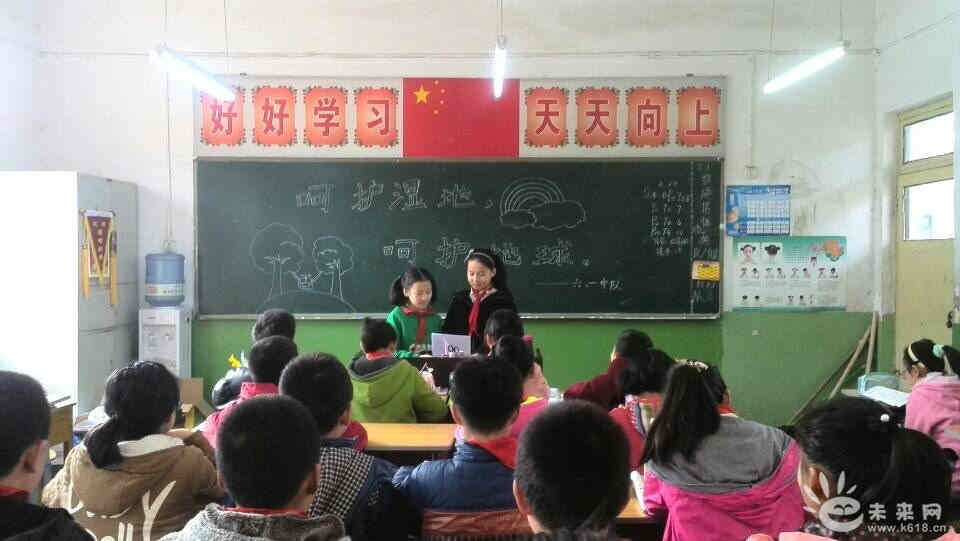 为加大对湿地保护的宣传,推动湿地保护工作的开展,2013年3月20日,明欣小学校利用主题班会、校园广播等对学生开展多种形式的湿地生态保护宣传教育活动。使学生知道湿地是地球上具有独特功能的生态系统,它不仅为人类提供大量的食物、原料和水资源,而且在维持生态平衡、保护生物多样性和珍稀物种资源以及涵养水源、蓄洪防旱、降解污染、调节气候、补充地下水、控制土壤侵蚀等方面均起到重要作用。通过讲解湿地的作用和功能、湿地保护的重要性和必要性,让学生进一步了解湿地,关心湿地,爱护湿地,同时向家长、社会宣传保护湿地、保护环境的自觉性和责任。