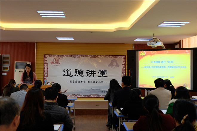 2015年4月8日南宁市新阳路小学在学校会议室召开"行有榜样践行'四有'" --向莫振高、苏慧敏同志学习主题活动 。
