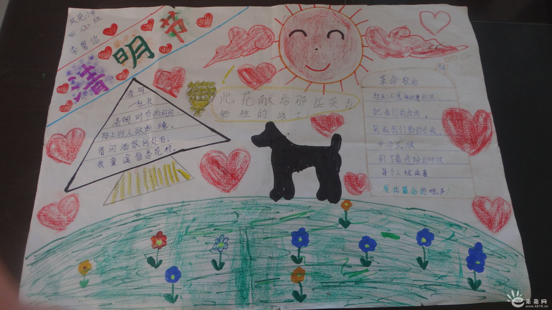 一年一度的清明节即将到来,为了缅怀先烈,引导学生铭记革命先烈英勇事迹,牢记革命先烈的光荣历史,培养强烈的爱国主义情感,常店镇凤苑小学近日举行了高年级学生手操报比赛活动,手操报主题为清明节“红色铭记——缅怀先烈”。该校师生都投入了极大的热情,充分表达了师生对先烈的感恩情怀以及对美好生活的向往和憧憬。