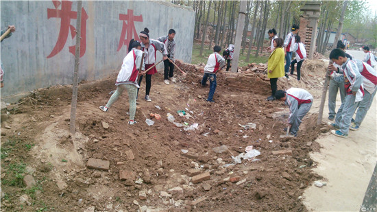 在学校大门两侧,由于施工的原因,人工挖掘了两个水坑,为了消除隐患,2015年4月17日,成武汶上林路口小学在学校的统一安排和部署下,在各中队辅导员的统一指挥下,利用本校的活动日——每周五下午课外活动课,组织高年级少先队员,从家拿来铁锹、推车等劳动工具,利用一个小时的时间,,把这些含有安全隐患的水坑填平。受到过往群众的的一致好评。