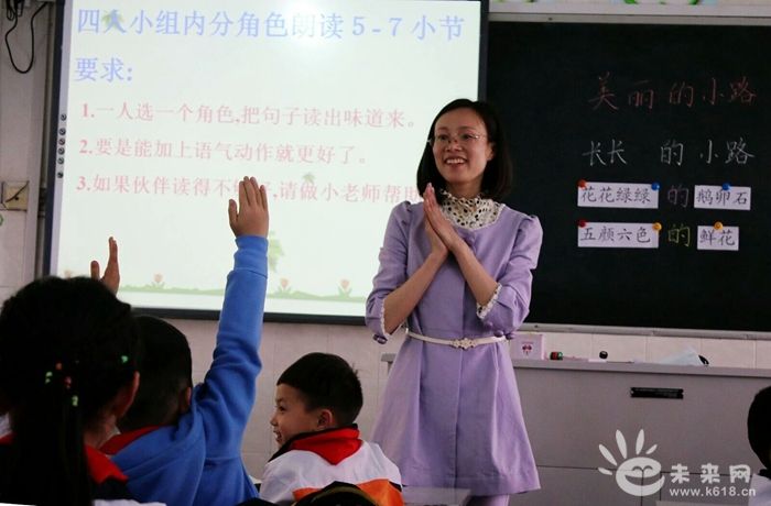 培训回来的周芳老师正在上示范课展示学习成果