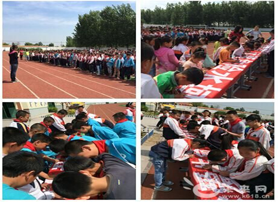 5月27日上午9点30分,杜戈庄小学开展了一场以“珍爱生命 远离危险水域”为主题的防溺水签名仪式。