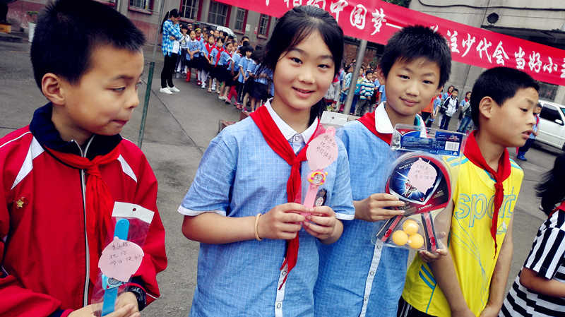 随着激昂的少先队出旗曲的响起,主题队日活动正式开始。活动中,一年级的同学光荣地加入了中国少年先锋队,戴上了鲜艳的红领巾,并庄严宣誓,承诺会积极响应少年先锋队的号召,好好学习,好好生活,努力成为党和社会主义的接班人。大队辅导员杨贇宣读《市广东路小学“十星级少先队员”表彰决定》,并为“十星级少先队员”颁发奖状;同时大队部结合全国少工委开展的“你好,少代会”红领巾小心愿、小建议活动,在广泛收集少先队员心声心愿的基础上,帮助了24名有困难、有需要的留守少先队员实现了心愿,为他们送去了一份关爱。