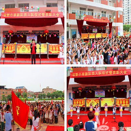 在充满朝气和活力的少先队队歌声中,仪式拉开了帷幕。大队辅导员洪丽彩老师宣读了新入队队员名单。一百多名新队员,脸上洋溢着自信的微笑,排着整齐的队伍,老队员为他们带上了鲜艳的红领巾。大队辅导员带领新队员庄重宣誓。新队员发表了感想,老队员也向新队员表示热烈的祝贺,并倡议一起努力,共同进步。