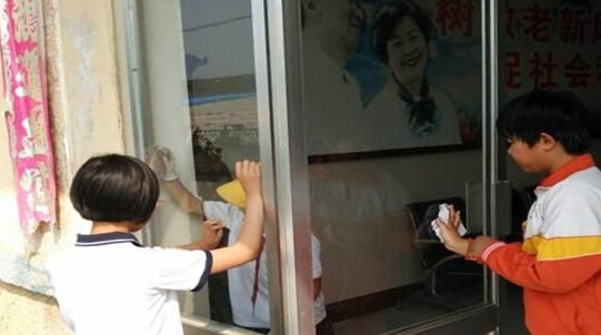 刚到天福山敬老院,十余名少先队员就开始了清洗活动,一时间端盆送水,擦地抹窗,忙得不亦乐乎。经过一个多小时的努力,敬老院里的门窗闪亮,玻璃崭新如初。文登营村的四十多名少先队员,在香水路曲轴小区、家家悦超市周围捡拾白色垃圾,向商户和路人发放教育明白纸,宣传讲解教育政策和法规,在路口、街道显要位置张贴《教育直通车》。
