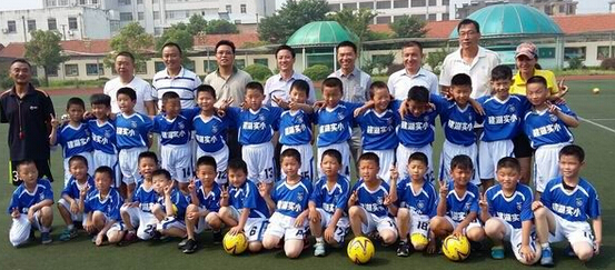 7月13日,学校足球合作单位——江苏金建交通工程有限公司吴克亮董事长在县教育局徐洪兵科长的陪同下莅临东校区,观摩了训练现场,在给予高度评价的同时,提出了殷切希望。他希望建湖实小能发挥“全国青少年校园足球特色学校”“江苏省足球传统校”的优势,克服一切困难,强化足球的普及和队员的训练工作,让足球成为孩子生命中的一部分,也为国家输送更多的足球人才。最后,金建交通工程有限公司还为队员们赠予了足球训练器械、球服和球鞋等物资。