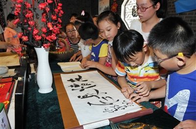 昨日,海南社区关工委组织30余名少先队员和他们的家长,一起来到三和小学,参观学校新设立的“小小中国馆”。馆内展示区的江苏蓝印花布、山东论语竹简、安徽茶叶等600余件物品,让孩子们在大开眼界的同时学到知识。(戴跃华 黄驰 摄)