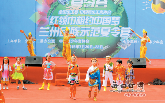 7月21日,由全国少工委办公室、中国青少年宫协会、兰州市少年宫等单位联合举办的“红领巾相约中国梦”兰州民族示范夏令营正式开营。各民族的小朋友们欢聚一堂,通过参观、学习、实践、联欢等丰富多彩的夏令营生活,进一步促进他们从小立志向、筑梦想,在暑假里健康快乐成长。(记者 裴强)