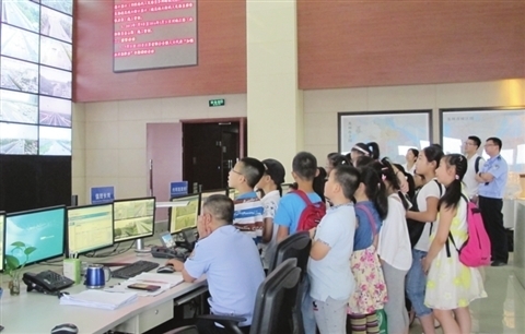 学生们参观了交通指挥大厅,观看了全市快速路和主干道系统实时监控情况。