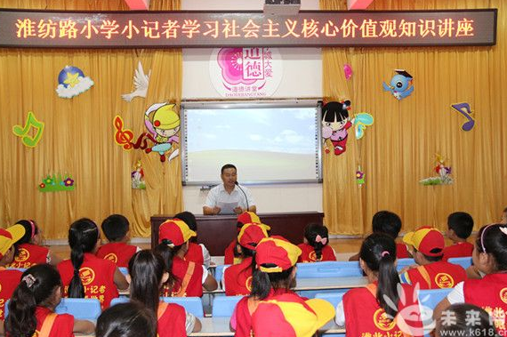 为进一步贯彻落实社会主义核心价值观,帮助学生树立正确的世界观、人生观和价值观。近日,淮纺路小学举行了小记者社会主义核心价值观知识讲座。