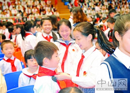 11月9日,广东中山市少先队纪念孙中山先生诞辰150周年暨万人入队活动在市实验小学启动,25个镇区以及市属小学的新队员代表齐聚于此。入队启动仪式前,新老队员一起听孙中山故事、学队史、唱队歌、重温入队誓词。据了解,全市200多所小学将陆续在近期举行新队员入队仪式。